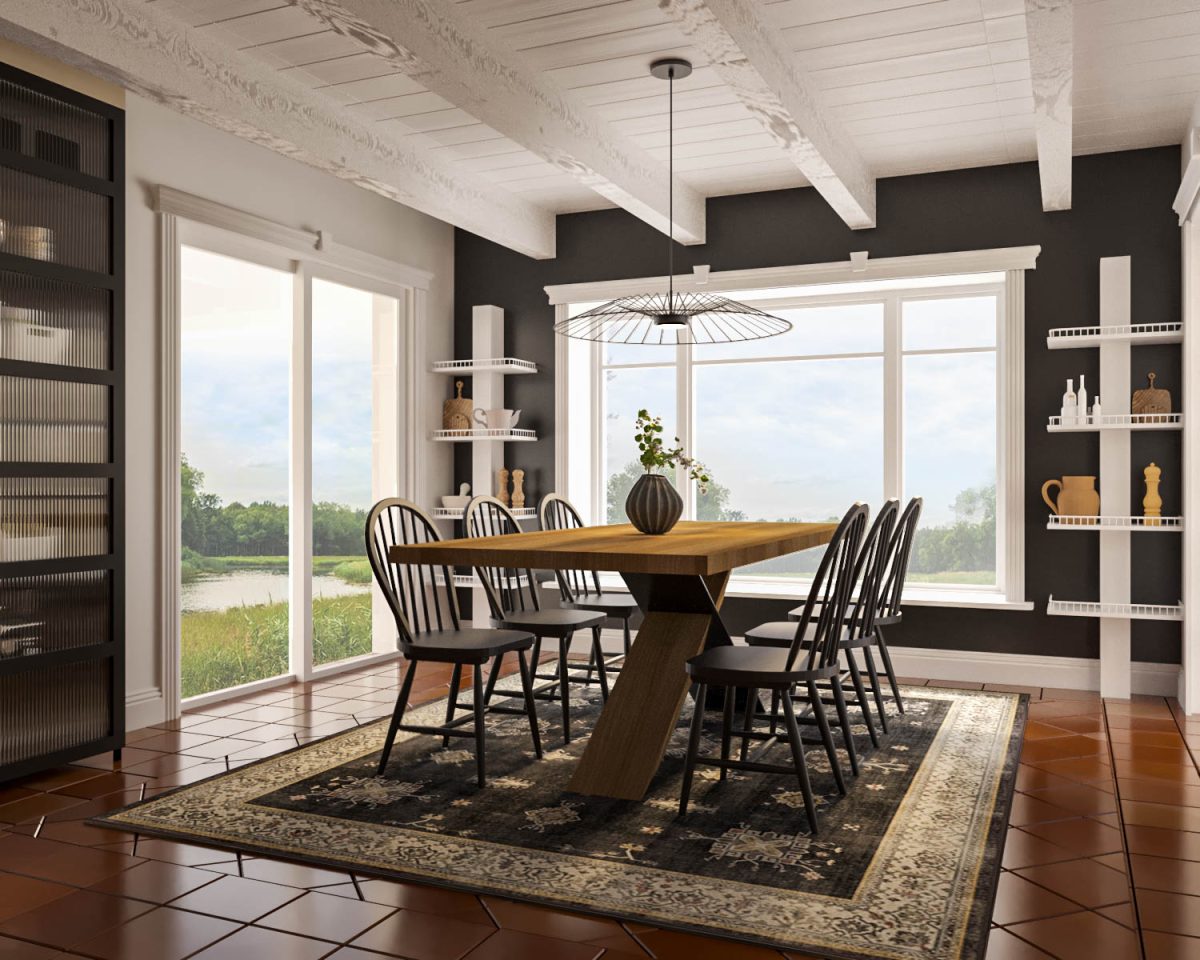 - Stylisme (mobilier, accessoires, coloration et papier peint) au niveau du salon et de la salle à manger